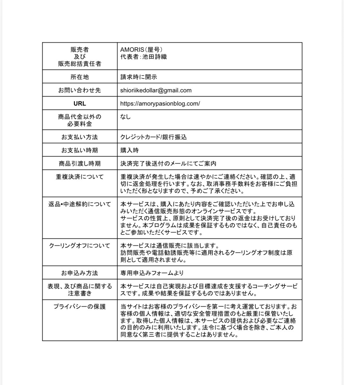 特定商取引に基づく表記